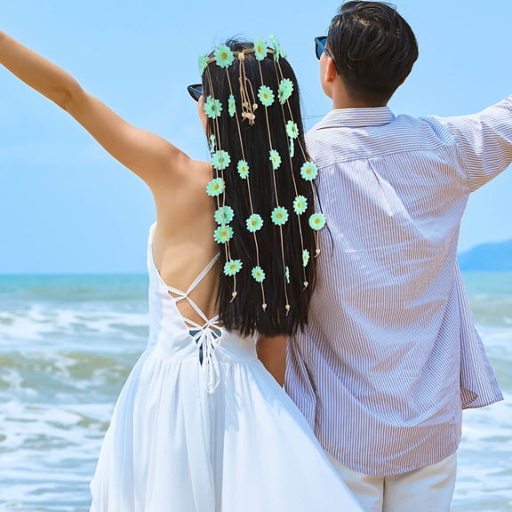 current price $12.14LOLIPPYY Adjustable Light Green Hippie Headband with Floral Design Handmade Hair Decoration