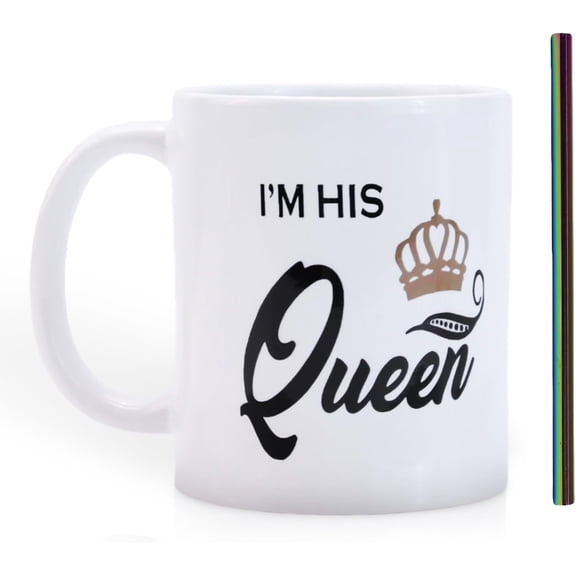 current price $17.99I'm His Queen Coffee Mug, White Ceramic, Large Cup with Crown Design, Durable, Double-Sided Print, Comfortable Handle, Perfect for Couples Gift