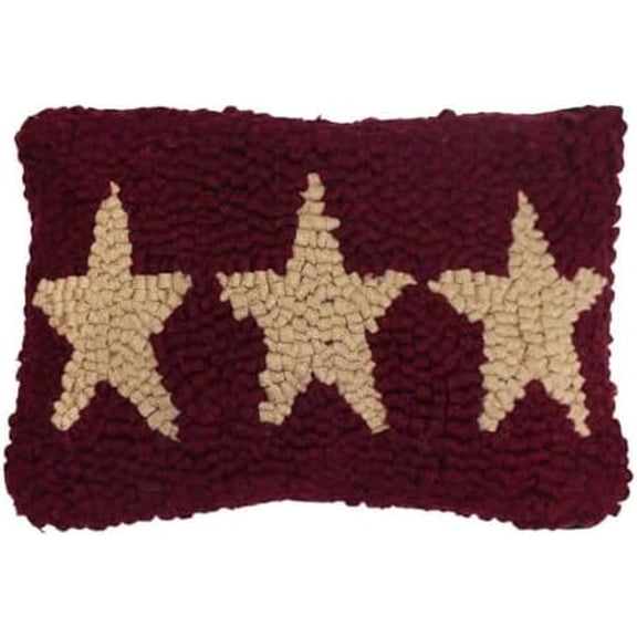 Three Star Hooked Pillow 8" X 12" Wine - Hooked Wool$$Bedding $30.97