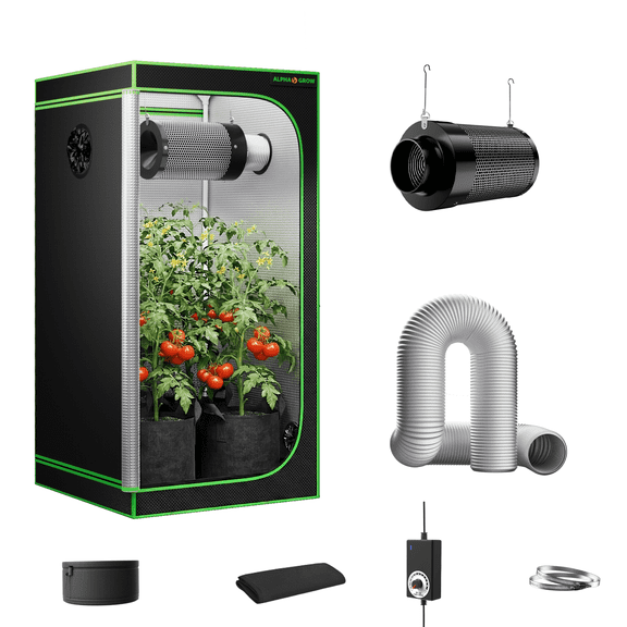 ALPHAGROW 24"x24"x48" Indoor Grow Tent System with Classic D-Door, Complete Hydroponic Planting Kit with 4-Inch Integrated Air Filtration & Silver Ducting, Compact Propagation Set (Light Not Included From $99.99