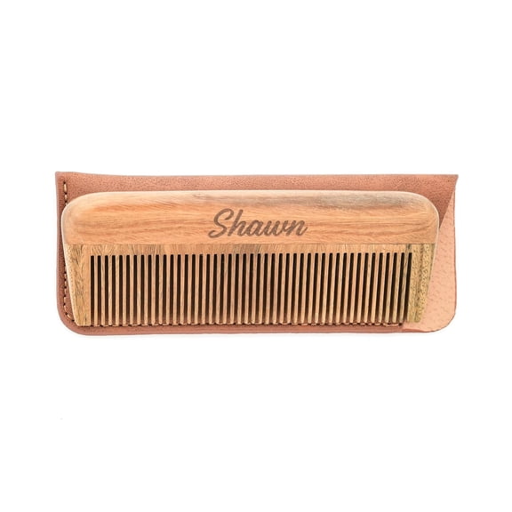 Onedor Handmade 100% Natural Green Sandalwood Fine Tooth Wooden Comb - Custom Engraved Words/Icon - For Men's Hair, Beard, and Mustache Styling - Pocket Comb With Leather Case From $14.99