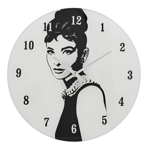 current price $35.45Hometime Iconic Collection Glass Wall Clock 30cm The 50's Film & Fashion Icon