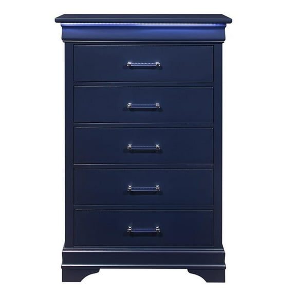 Pemberly Row Traditional Charlie Blue Wood 5-Drawer Chest with LED $516.90