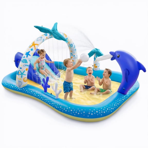 Bluescape Dino Inflatable Play Center, Kiddie Pool with Sprinkler, Toys & Slide, Age 2 & up, Unisex