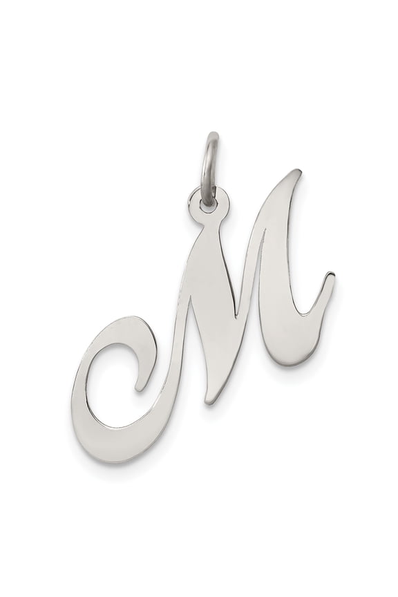 925 Sterling Silver Rhodium-plated Fancy Script Letter M Initial Pendant for Women (L-34.61 mm, W-25.55 mm)Sterling Silver Rhodium-Plated Cutout Letter M Initial Necklace Made In United States -Jewelry By Sweet Pea $77.64 Was $167.91