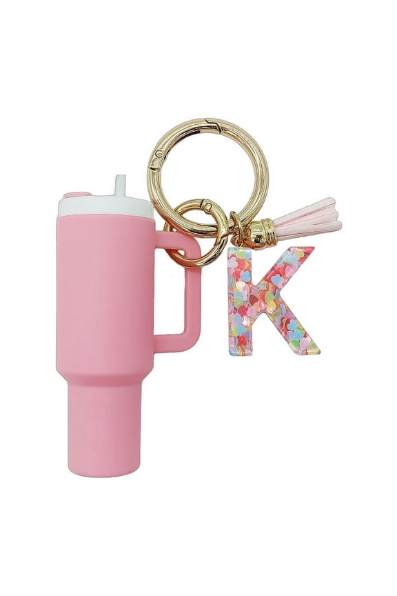 Mini Tumbler Keychain Accessories for Cup with Handle, Initial Letter Charm Cute Cup Chapstick Holder Key Keychains for Women Purse Backpack Handbag From $8.99