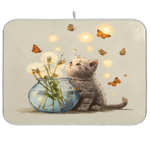 Kitchen Drying Mat Kitchen Drying Pad 16x18In Drying Dish Mat Dish Drying Mats Kitchen Countertop Multi-Function Drain Drying Mat Tiny Cat Blossom From $13.99