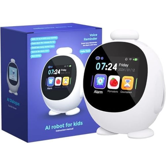 current price $59.98Kids Intelligent AI Alarm Clock, Ok to Wake Clock for Kids, Sleep Trainer Clock for Toddler, Adorable Digital Alarm Clock, AI Voice Clock with Chat, Time Management Gift for Children