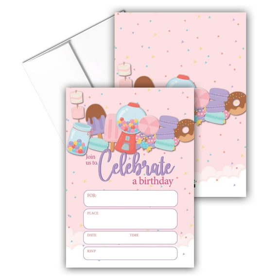 current price $11.95Stonehouse Colleciton | Kids Birthday Party Invitation Set | Sweet Treat Theme i