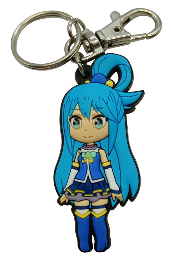 Isekai Quartet S2- SD Aqua PVC Keychain (Konosuba Character)Isekai Poster Women's Loose T-Shirt, Black, Small