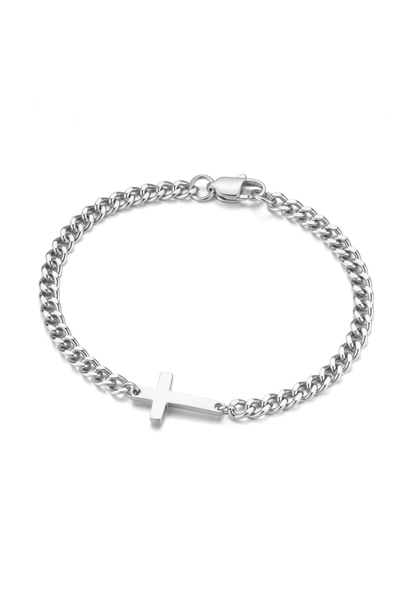 Stainless Steel Silver-Tone Mens Religious Cross Link Chain Bracelet with ClaspStainless Steel Cross Bracelet for Men Non Tarnish Silver Cross Cuban Chain Bracelet Sturdy Cuban Link Chain Bracelets Christian Jewelry Religious Baptism Confirmation Gifts for Men Boy From $17.99 Was $59.99