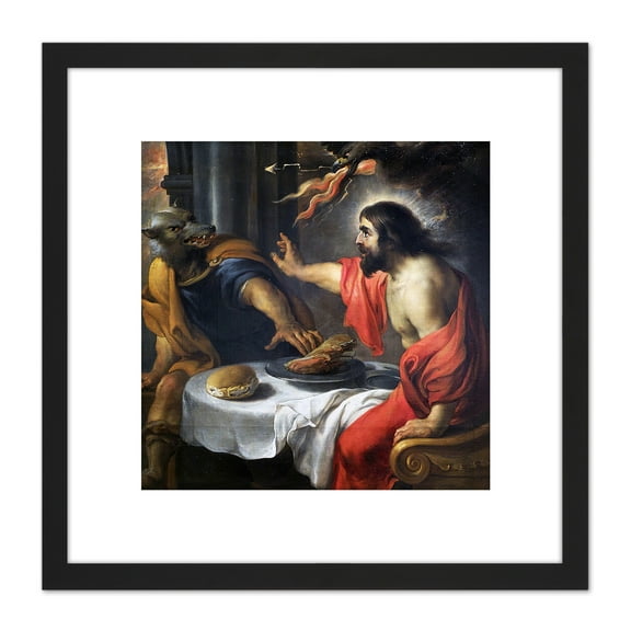 Cossiers Jupiter and Licaon Wolf Mythology Painting 8X8 Inch Square Wooden Framed Wall Art Print Picture with Mount