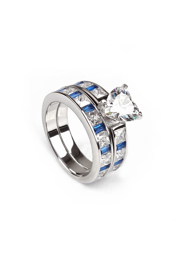Kaeli Wedding Ring Set for Women Engagement Matching Band CZ Blue Ginger Lyne Collection