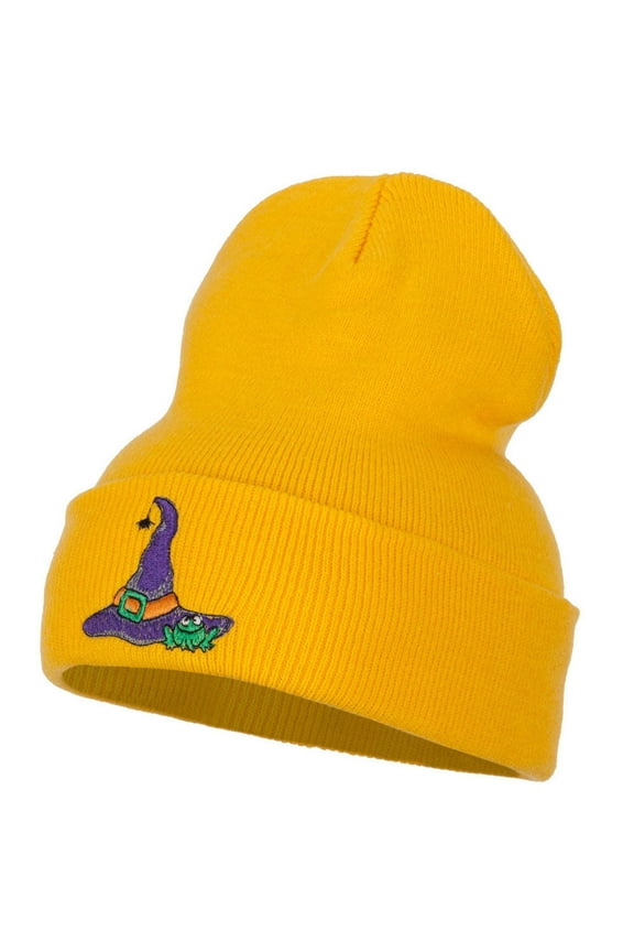 Witch Hat and Frog Embroidered Long Beanie - Yellow OSFM From $20.99