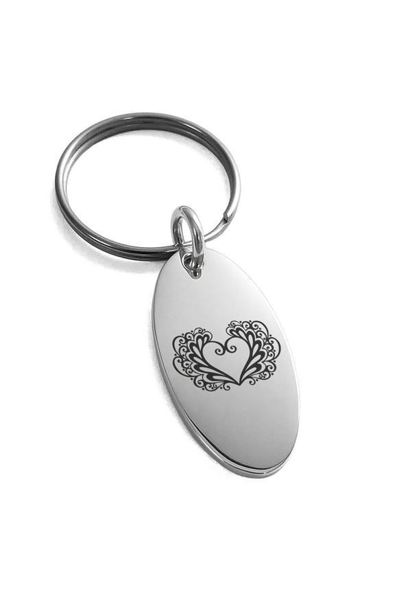 Stainless Steel Floral Filigree Heart Engraved Small Oval Charm Keychain Keyring From $15.00