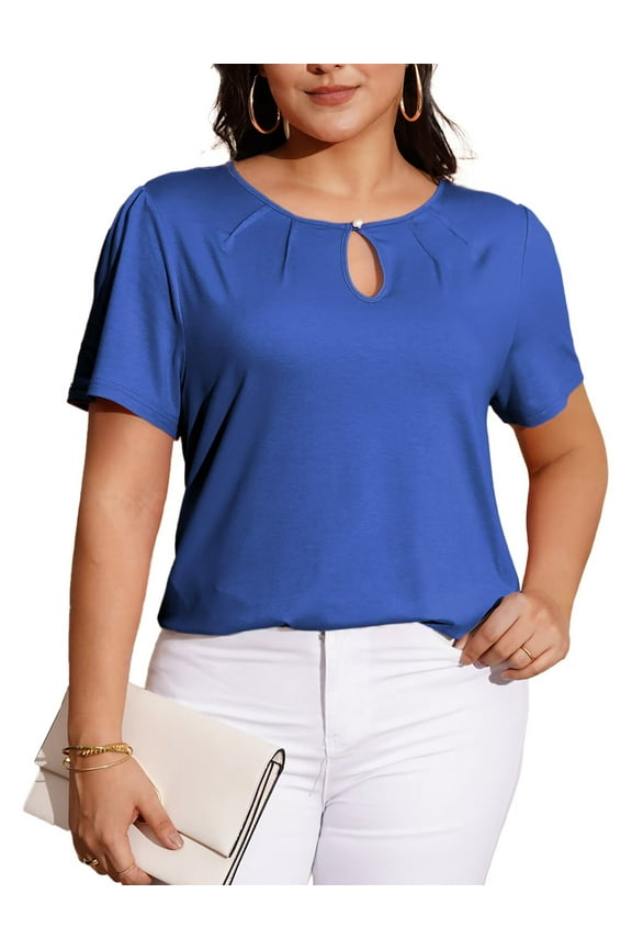 Womens Bow Tie Neck Blouses Dressy Casual Keyhole Neck Petal Sleeve Shirts Summer Business Work Office TopsClearance Blouses for Women Plus Size,Womens Plus Size Tops 3/4 Length Sleeve Shirts Casual Keyhole Neck T Shirts Loose Summer Blouses Was $13.99