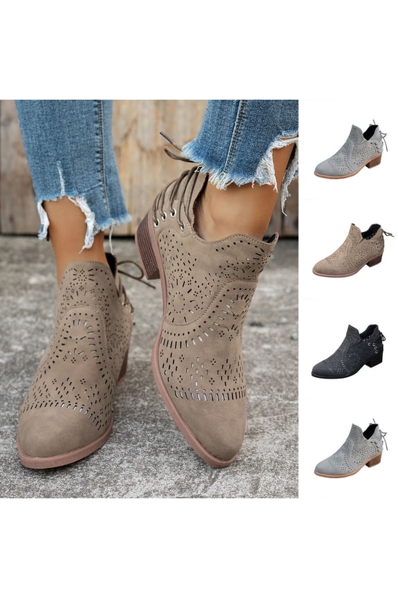 Spring Saving Juebong Women's Vintage Tassels Up Short Boots Midheel Boots Shoes Cowboy Boots Modern Western Cowboy Distressed Boot