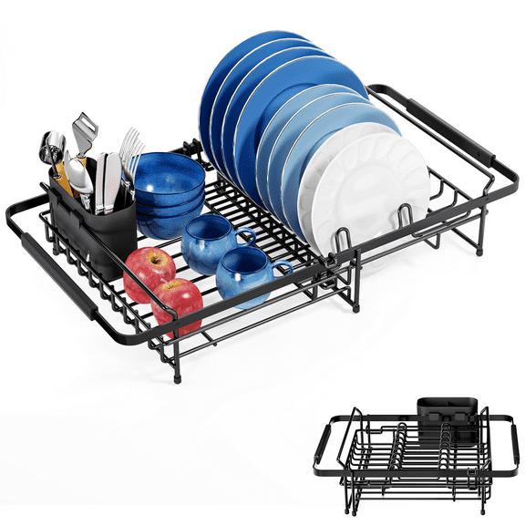 In 200+ people's carts Dish Drying Rack- Space-Saving Dish Rack, Dish Racks for Kitchen Counter, Stainless Steel Kitchen Drying Rack with a Cutlery Holder,12''W x 17''L, Black From $27.99 Was $31.99