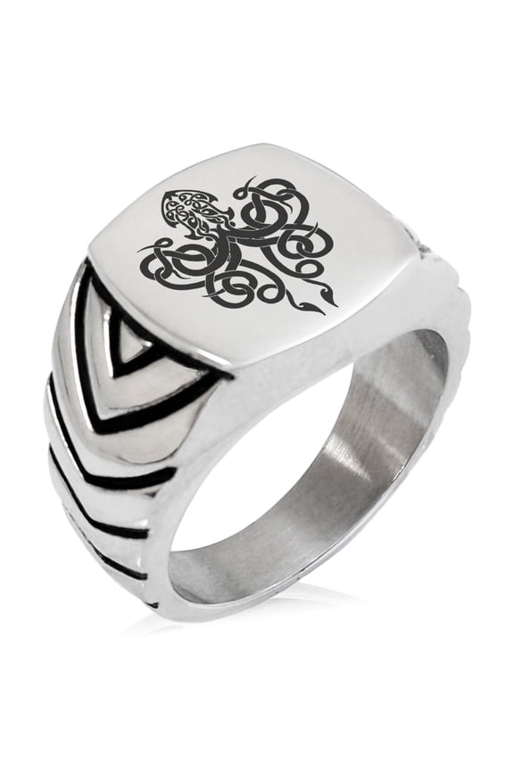 Stainless Steel Legendary Kraken Chevron Pattern Biker Style Polished RingStainless Steel Tribal Kraken Chevron Pattern Biker Style Polished Ring From $15.00