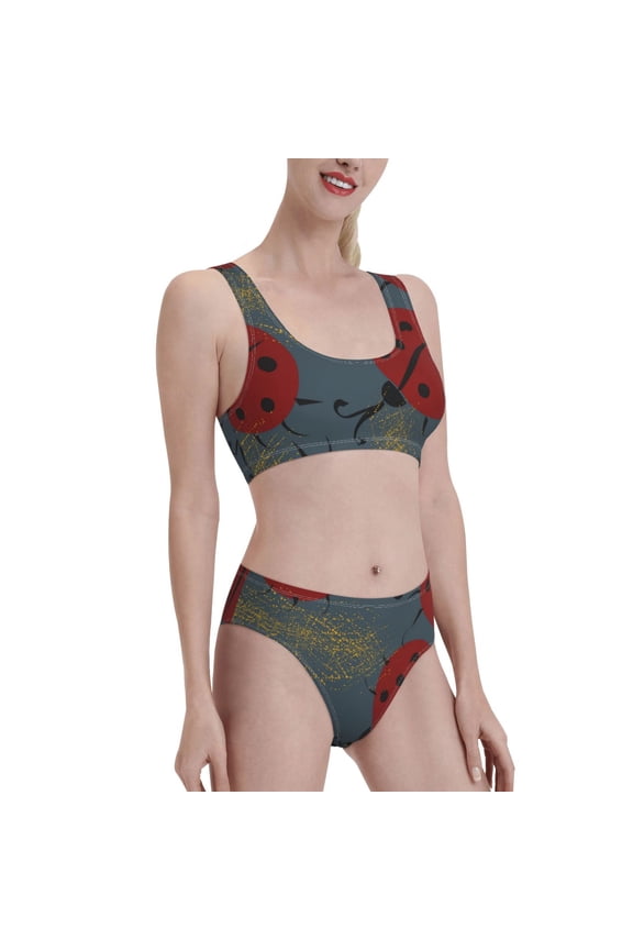 Cute Ladybugs for Womens High Waisted Bikini Top Sports Style Two Piece Bathing SuitsRed Ladybug Women's High Waisted Bikini Scoop Neck Swimsuit Two Pieces Bathing Suit-Large From $25.98