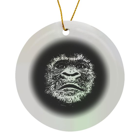3drose, Face of a Very Large Ape White Scratchboard Art Illustration, Circle Porcelain Ornament From $14.89
