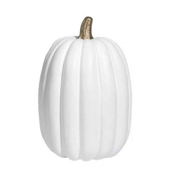 8.5 Inch Large White Pumpkins for Decorating - 1PCS Big Foam Decorative Pumpkin for Fall Decoration, Paintable Artificial Pumpkins Perfect for Halloween Thanksgiving Decor (Gold Handle)