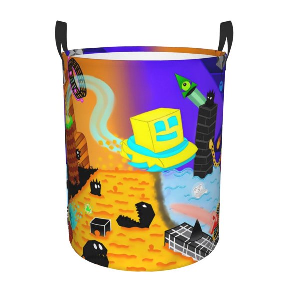 Geometry Dash Laundry Hamper Storage Basket With Handles, Round Circular Hamper For Home Bathroom Bedroom Dorm Medium