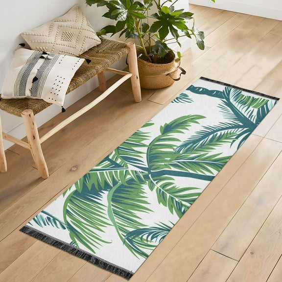 current price $37.99Vector Seamless Tropical Pattern with Palm Tree and Leaves Runner Rug Machine Washable Area Rugs Carpet Non Slip Entryway Mat for Bedroom Entryway Front Door