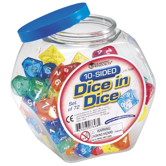Learning Resources 10-Sided Dice in Dice, Math Manipulatives, Educational Toys, Classroom Supplies, Set of 72, Ages 6, 7, 8+ $35.89 Was $39.99 $35.89/count