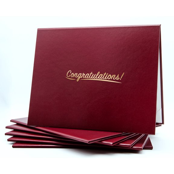 Leather Document Cover with a Congratulations Phrase in Metallic Gold Foil Satin Ribbons 8.5" x 11" Documents, (Black) From $24.99
