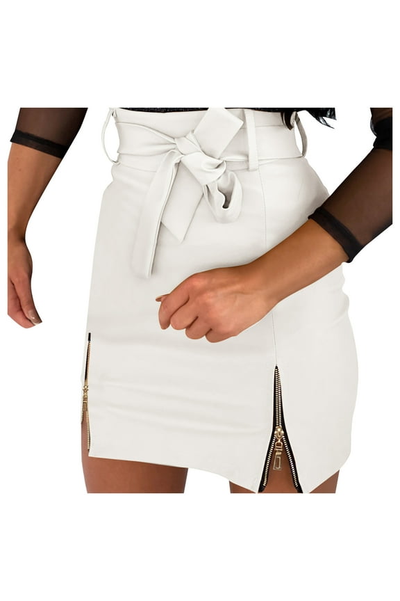 Leather Skirt High Quality Fabric Women's Black Leather Skirts High Waisted High Side Slit Bodycon Mini Skirts(Send the Belt)Women PU Leather Skirt Pleated Skirt Zipper High Waist Skirt Solid Color Flowy Swing Pleated Beach Skirts From $7.98