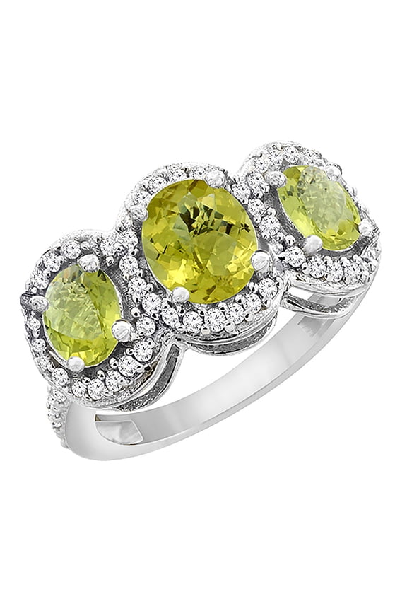 10K White Gold Natural Lemon Quartz & Citrine 3-Stone Ring Oval Diamond Accent, size 9Popular in Lemon Stone