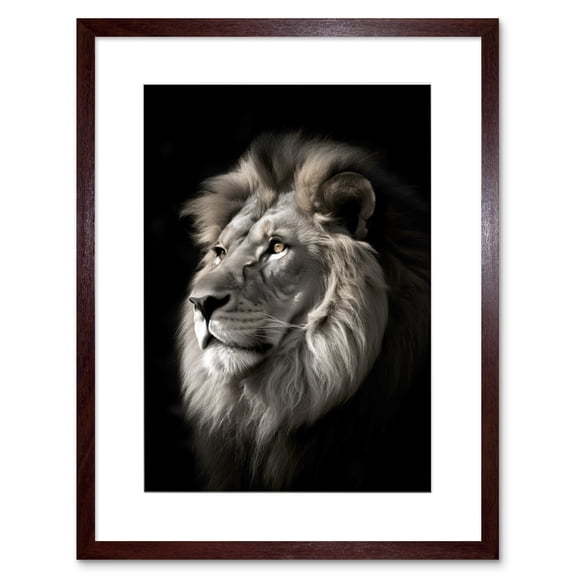 Available in additional 4 optionsLion Head Portrait Dramatic Photograph Strong Leo Dark Atmospheric Light Artwork Framed Wall Art Print 9X7 Inch