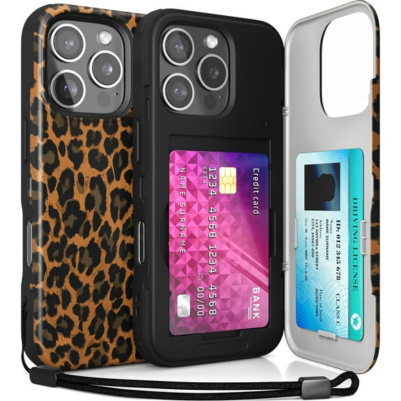 TORU CX SLIM for iPhone 16 Pro Case Wallet | Protective Shockproof Heavy Duty Cover with Hidden Card Holder & Card Slot | Mirror & Wrist Strap Included - Leopard From $17.99