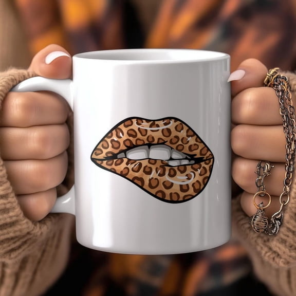 current price $9.99Leopard Lips Mug Animal Print Art 0ml Ceramic Coffee Cup.