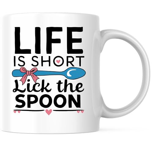current price $15.93Coffee Mug Life Is Short Lick The Spoon Funny Cooking Quote Baking Kitchen White Coffee Mug Funny Gift Cup