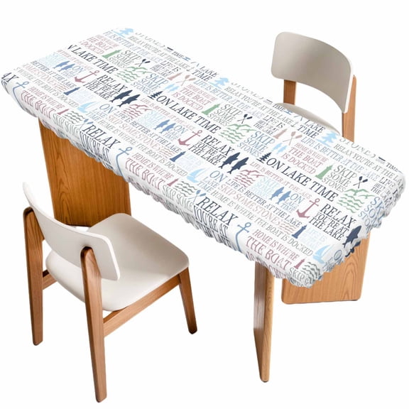 Ocean Nautical Table Cloths for 8 Foot Rectangle Tables, Rustic Anchors Fish Oars Lighthouses Patio Waterproof Elastic Fitted Tablecloths, Washable Rectangular Table Cover for Camping