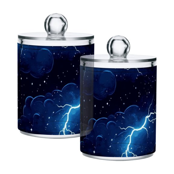 2 Pack Bathroom Canisters Transparent Storage Jar for Cotton Ball, Swab, Floss Blue Tone Lightning From $16.99