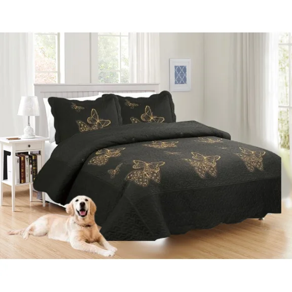 Gorgeous Home Linen Nena Butterfly Embroidery Quilt Set, Heavyweight, Reversible Bedspread, Hypoallergenic