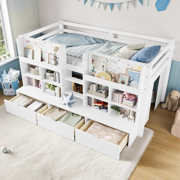 Gymax Twin Size Loft Bed Wooden Slats Support Loft Bed Frame w/ Ladder & Guardrails Espresso From $138.00