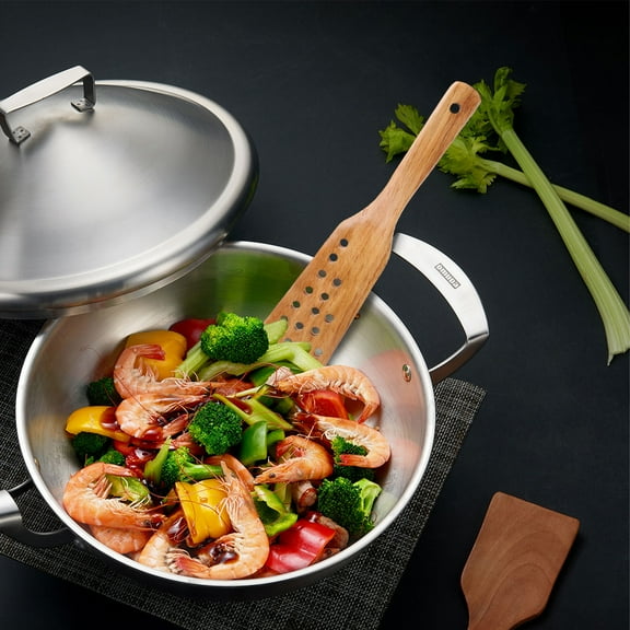 Clearance SouMaox Stainless Steel Spatula Turner Wood Handle Kitchen Utensil Cooking Shovel Ladle Culinary Tool Restaurant Grade Chef Flipping Gear Was $15.97