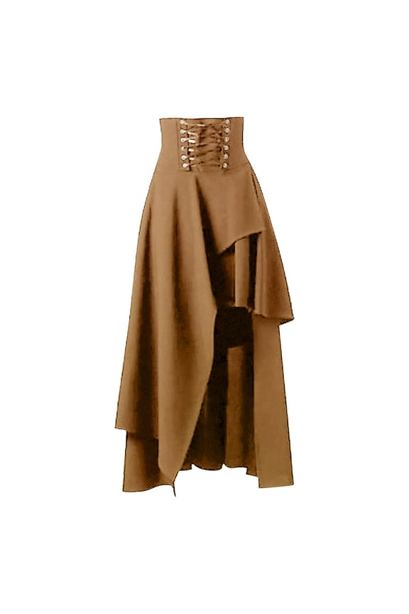 Dresses Women Gothic Sleeveless A-Line Dress High Low Design Dress Retro Style Solid Color Sleeveless Princess DressWomens Halloween Gothic Dress Long Sleeve V-Neck Lace Up Ruffle Hem High Low Vintage Midi Dress Fashion Clothes