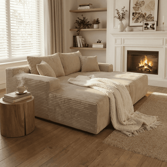 current price $1,162.87Carbon Gray Corduroy 86'' Oversized Double Chaise Lounge Sofa Bed Modern Low-Profile for Living Room