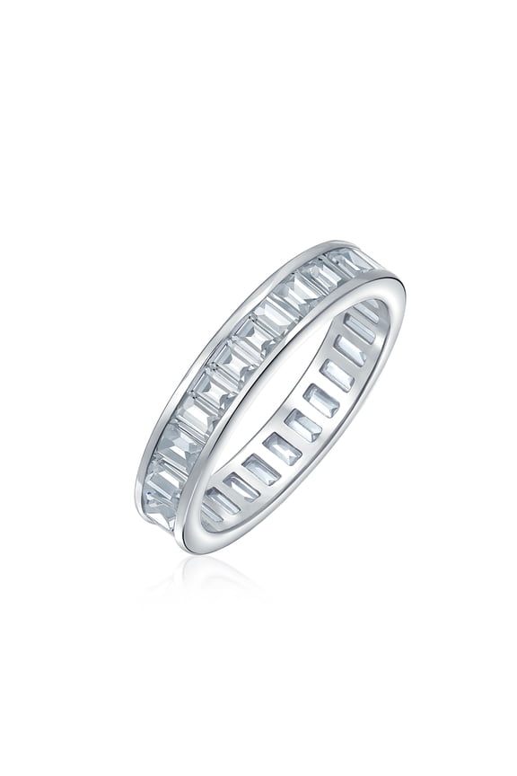 Womens Alternating Round & Baguette Cubic Zirconia CZ Flower Motif Ring Eternity Band .925 Sterling SilverPopular in Lucite Ring