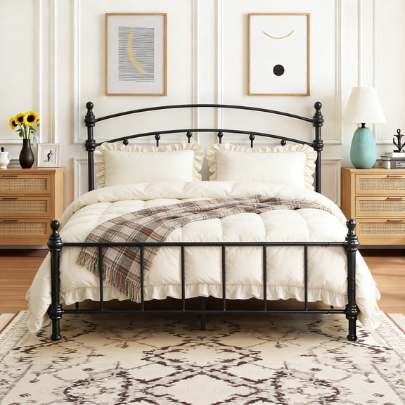 Metal Full Size Bed Frame with Headboard,Victorian Style Headboard and Footboard, No Squeak, Heavy Duty 1500lbs Support, Easy 30-Min Tool-Free Assembly, No Box Spring Needed/Underbed Storage From $64.89