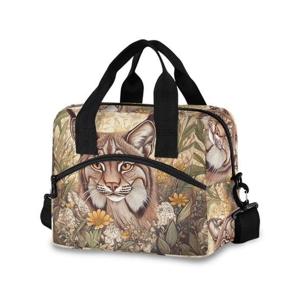 Clearance DIXRUYEE Lunch Bag Double Deck Lunch Cooler Box Tote Bag Fashion Lynx in Bloom Printed $17.79 Was $19.99