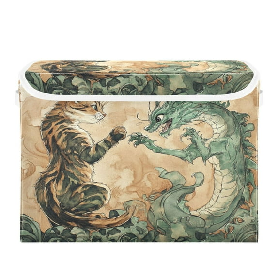 current price $21.19WOBOGO Lynx and Dragon Painting Large Collapsible Storage Box Flip Lid Fabric Decorative Organizer Container Basket with Handles 16.512.611.8in