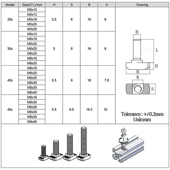 current price $22.3220 PCS M8 Thread T-Slot Drop-in Stud Sliding Screw Bolt, Heavy Duty Silver Tone Carbon Steel Nickel Plated Hammer Head Bolt T Shape Screws for European Standard 40 Series Aluminum Profile