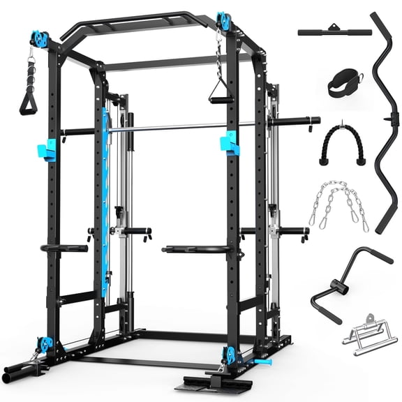 Mikolo M4 Smith Machine Home Gym, 2200 lbs Power Rack Cage with Cable Crossover, Weight Bar, 360° Landmine, Barbell Holders and Other Attachments, Total Body Strength Training Cage From $999.99
