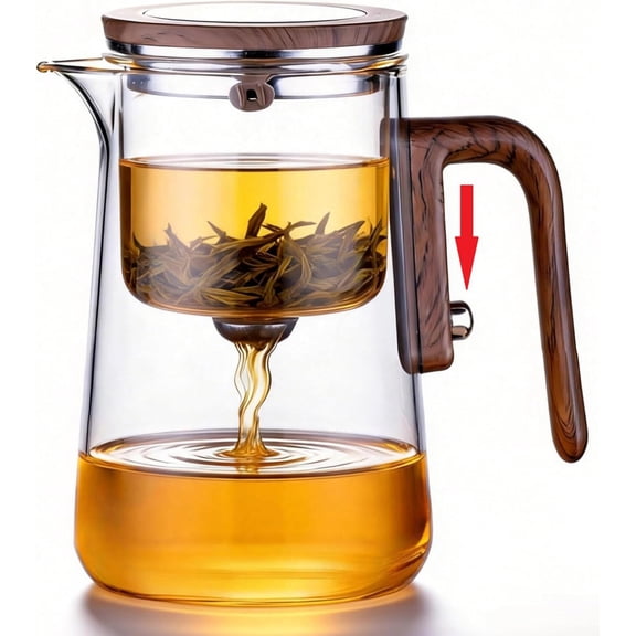 Glass Teapot with Wooden Handle, Press Control Magic Tea Pot for Perfect Brew & Water Separation From $43.98